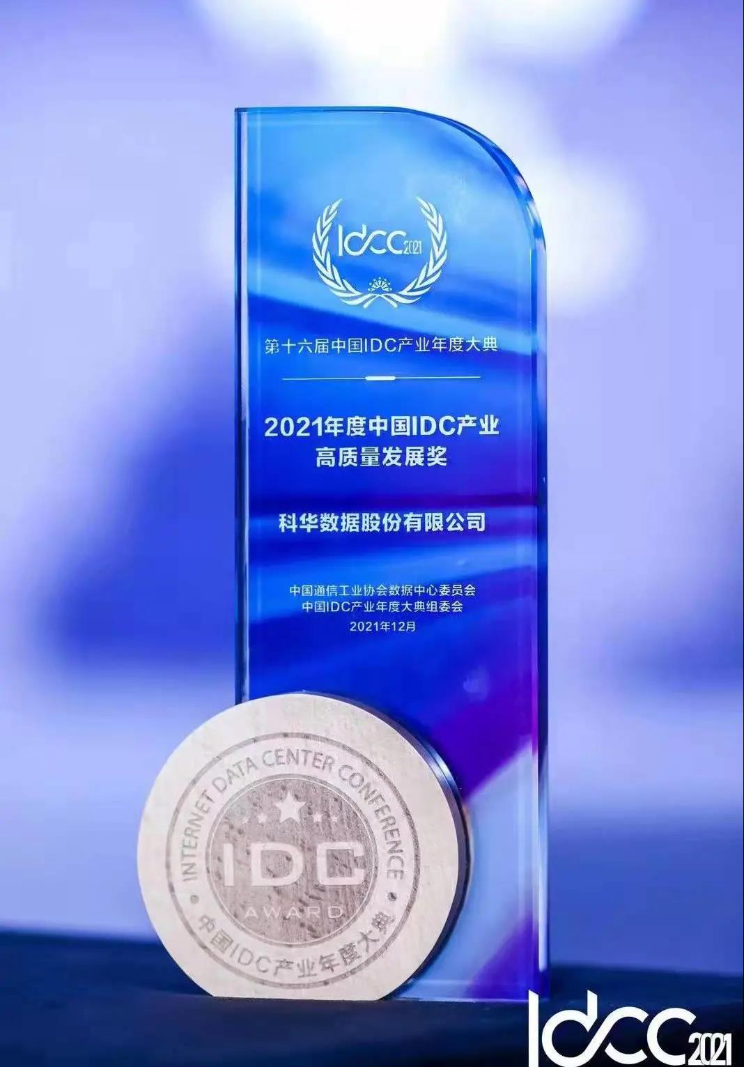 在当天颁奖盛典上,科华数据被主办方授予“2021年度中国IDC产业高质量发展奖”